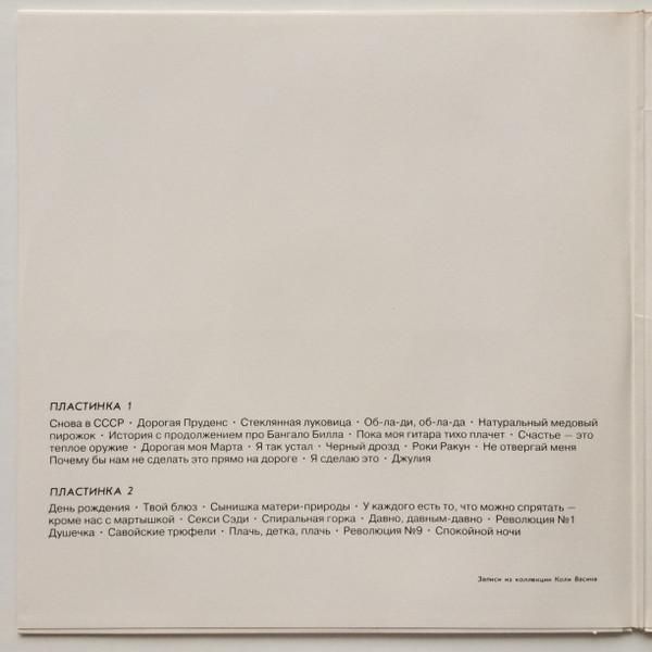 Track B4 "Piggies" is missed in tracklist on the cover.
