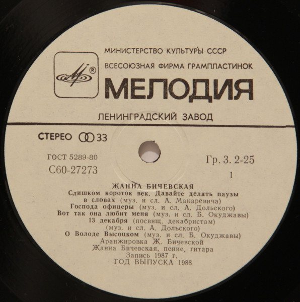 Written-By – В. Сергеев*, Ж. Бичевская*