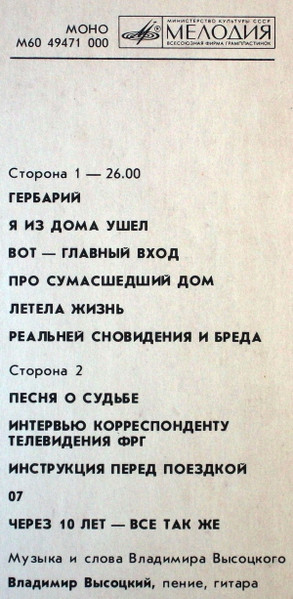 - Music By, Lyrics By, Guitar, Vocals – Владимир Высоцкий