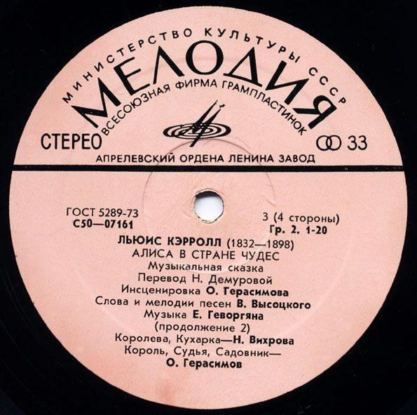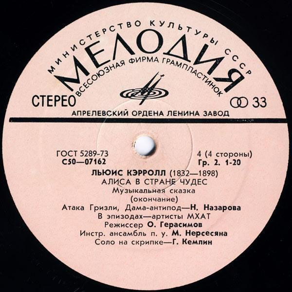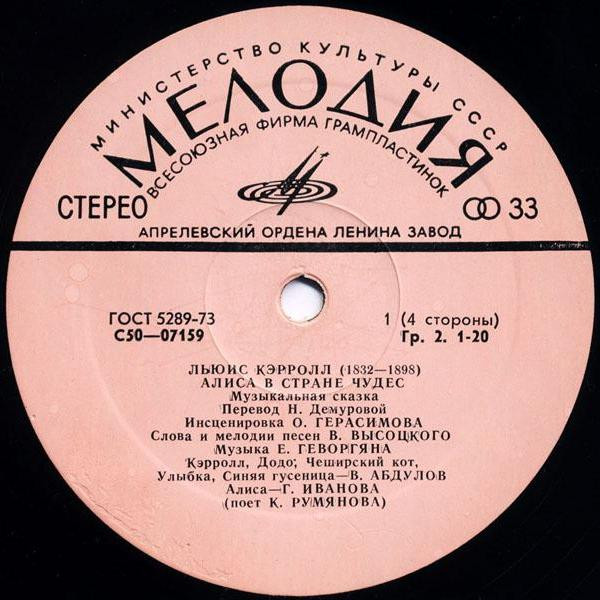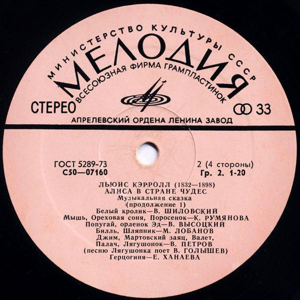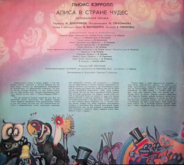 - Voice Actor [Кэрролл, Додо, Чеширский Кот, Улыбка, Синяя Гусеница] – В. Абдулов*
