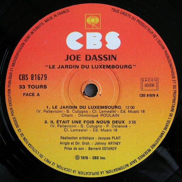 Joe Dassin - Le Jardin Du Luxembourg release has different text on labels