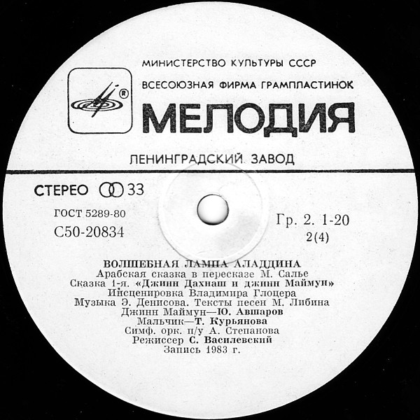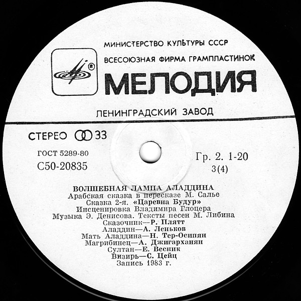 Всесоюзная студия грамзаписи. Запись Всесоюзного радио 1983 г.