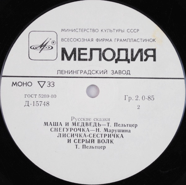 | B3 | Т. Пельтцер*– | Лисичка-сестричка И Серый Волк |