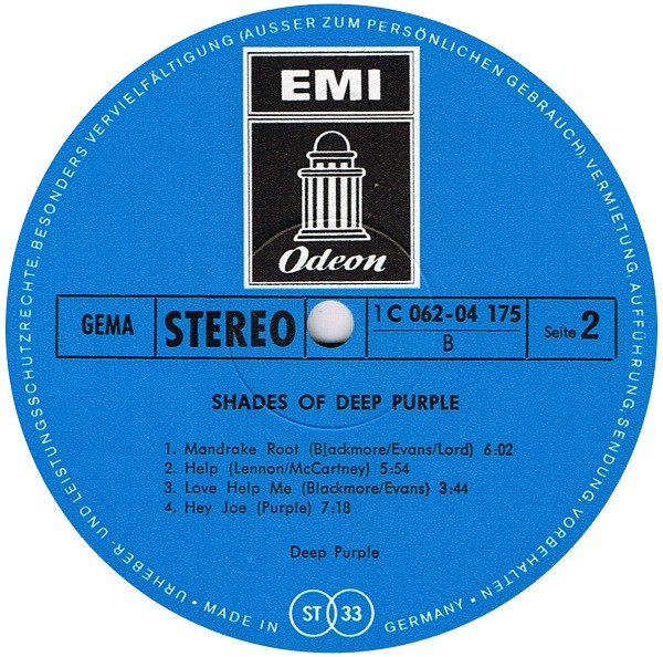 The writer credits at B4 are obviously wrongly credited to Deep Purple.