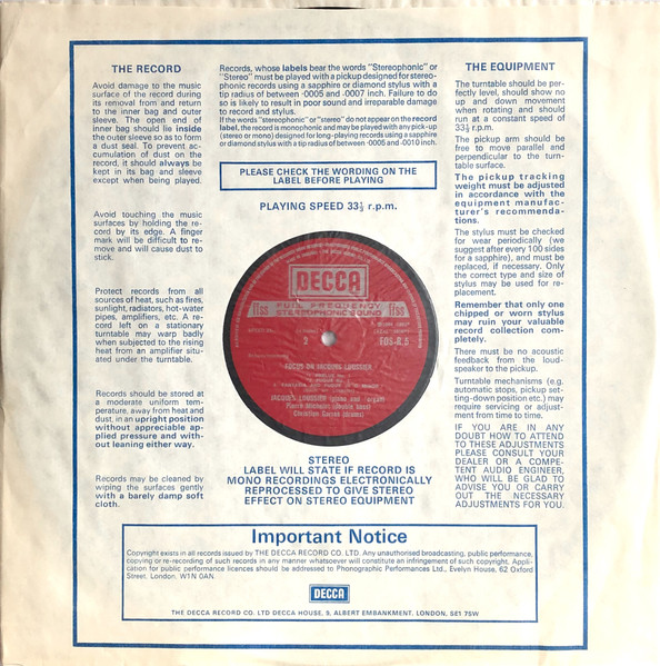 - Record Company – The Decca Record Company Limited