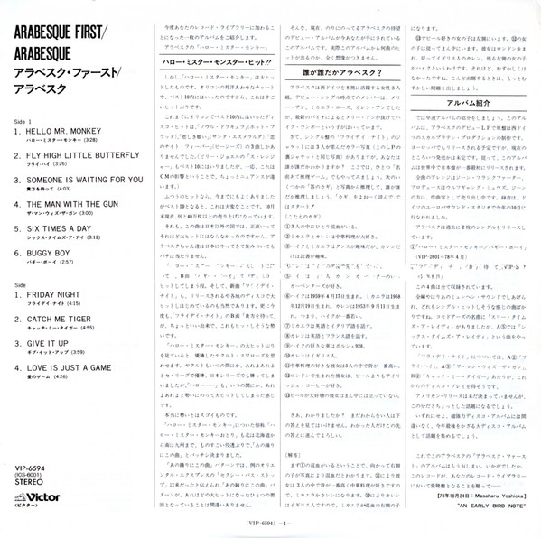 The first LP of the band Arabesque released in Japan.
