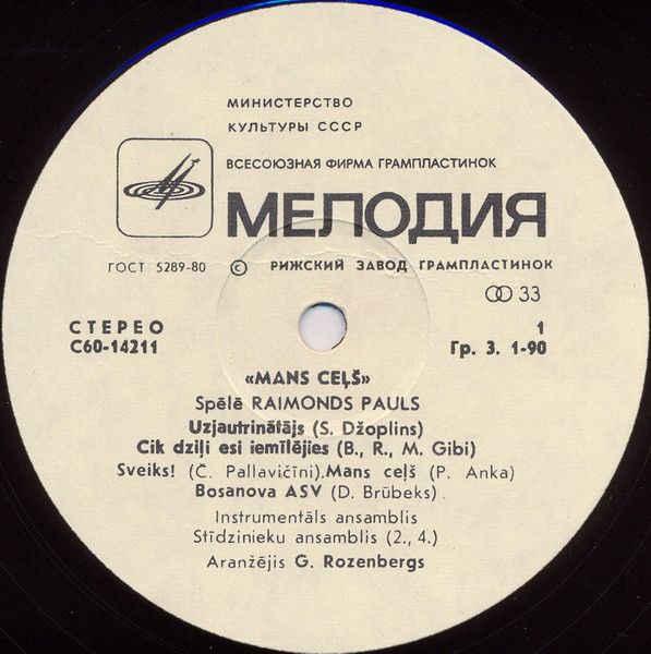 - Pressed By – Рижский Завод Грампластинок