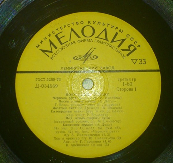 - Ensemble – Концертно-эстрадный Ансамбль П/У Г. Гараняна* (tracks: A4, A6, B3), Червона Рута (tracks: A1, A3, B1, B4, B5)