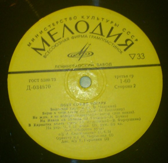 - Orchestra – Оркестр Кинематографии (tracks: B2), Эстрадный Оркестр Всесоюзного Радио (tracks: A2)