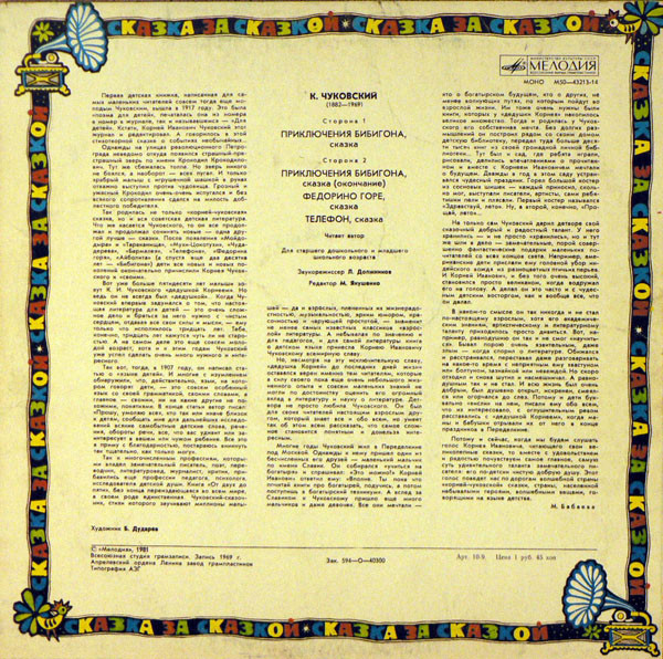 Всесоюзная студия грамзаписи. Запись 1969 г.