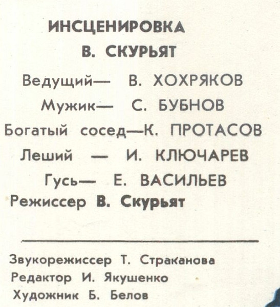 - Voice Actor [Царь] – Н. Литвинов* (tracks: A, B1)