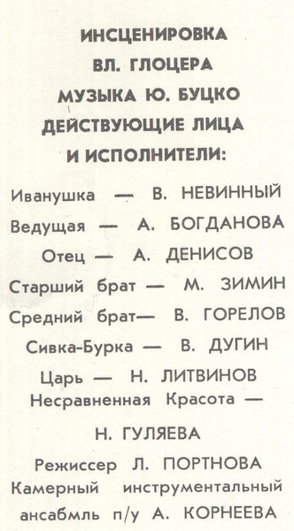 - Voice Actor [Сивка-Бурка] – В. Дугин* (tracks: A, B1)