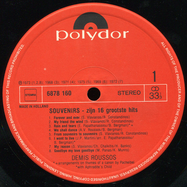 Demis Roussos - Souvenirs, Zijn 16 Grootste Hits