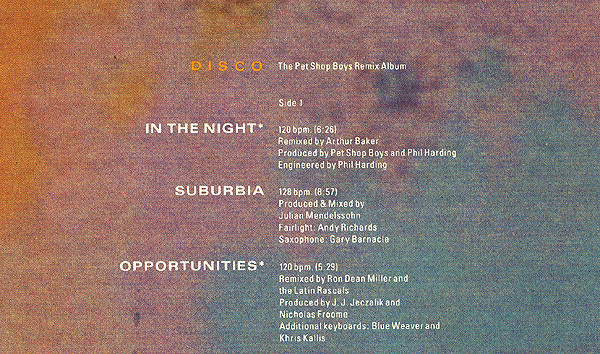 In The Night, Opportunities and West End Girls are analogue recordings.