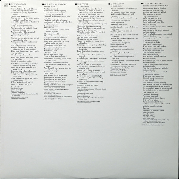 - Percussion – Andy Newmark (треков: A4, B4), Ralph McDonald* (треков: A3, A5), Richard Perry (треков: B1)