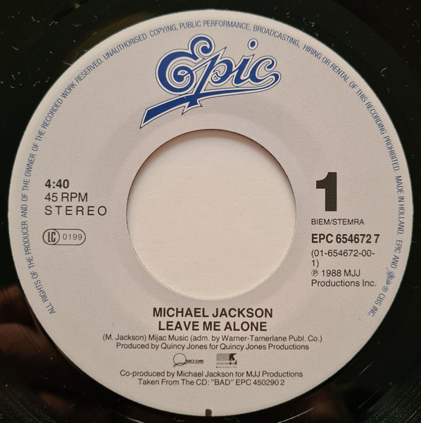 On this cover the reference is not written in front and on this one Michael Jackson - Leave Me Alone it is written in front.