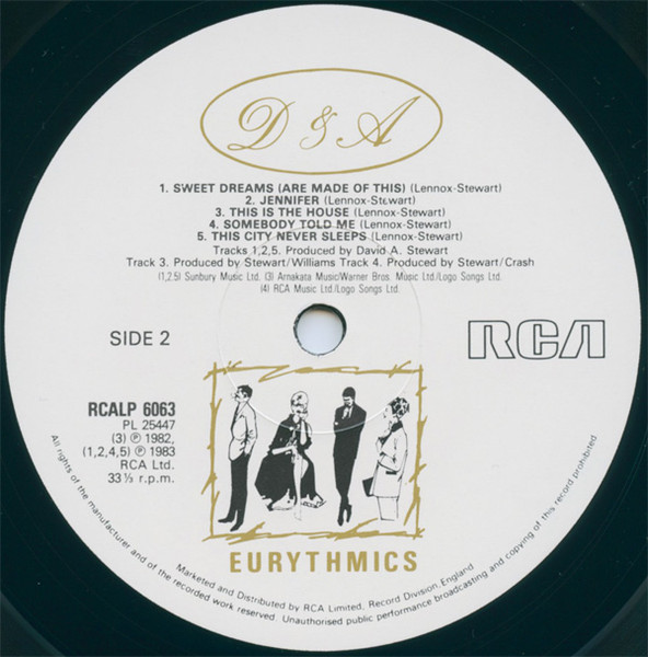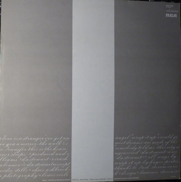 - Written-By – A. Lennox* (треков: A1, A2, A4 to B5), D. Stewart* (треков: A1, A2, A4 to B5)