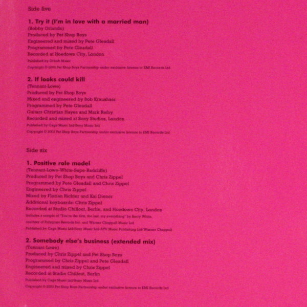 ℗ 2002 The copyright in this sound recording is owned by Pet Shop Boys Partnership Ltd, under exclusive license to EMI Records Ltd.