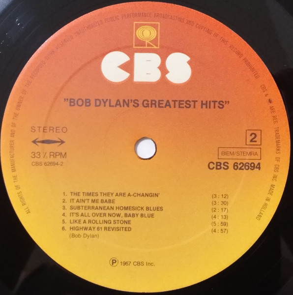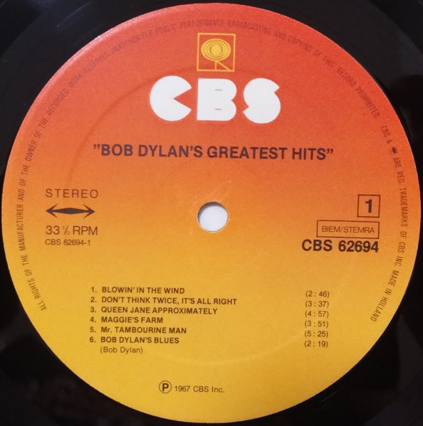 Very similar to release Bob Dylan - Bob Dylan's Greatest Hits but without Price Code and right upper corner detail.