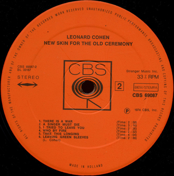 Manufactured by CBS Records/CBS is a trademark of CBS Inc./ NL printed in Holland