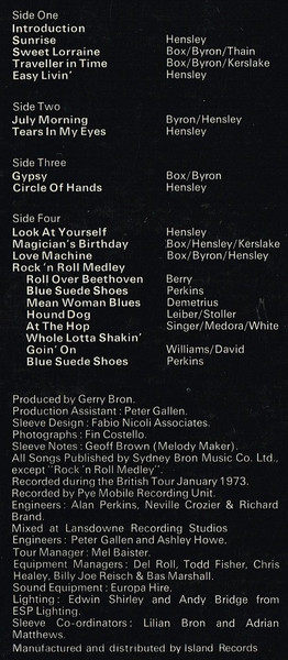℗ 1973 Bronze Records Ltd. (on center labels and inner sleeve LP 1)