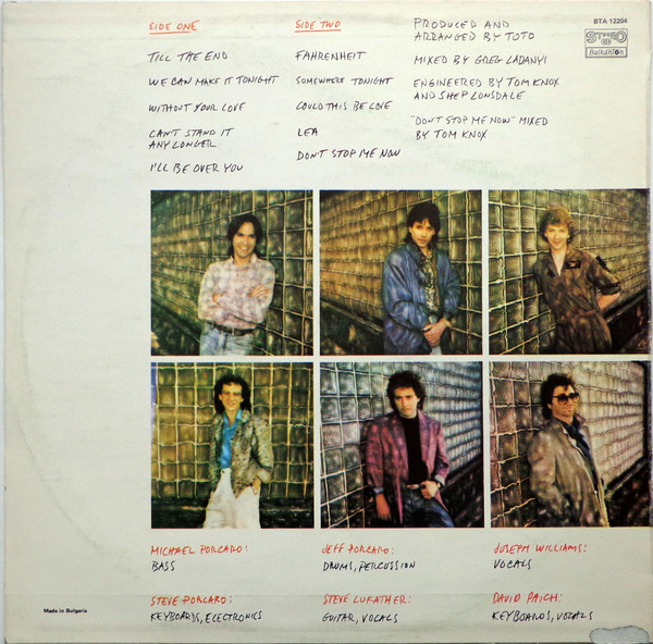 - Written-By – Barry Bregman (tracks: A2), David Paich (tracks: A1, A3, A4, B1 to B3, B5), Jeff Porcaro (tracks: A2, B1, B2), Joseph Williams (tracks: A1, A2, A4, B1, B3), Randy Goodrum (tracks: A5), Steve Lukather (tracks: A4, A5, B2, B5), Steve Porcaro (tracks: B4)
