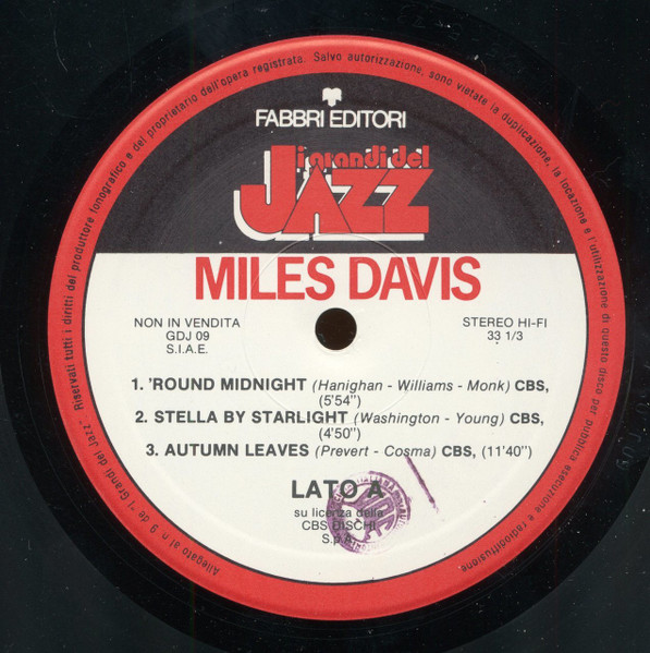 Track A1 originally released on Miles Davis - 'Round About Midnight