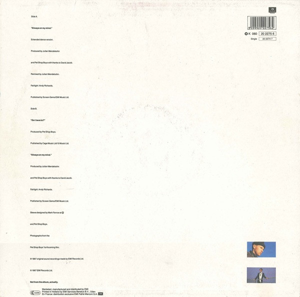 Differs from Always On My Mind, this one has no French price code on back of sleeve.