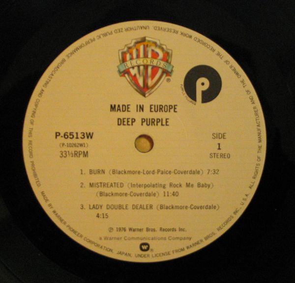 Japanese series of limited-edition vinyl reissues of the Deep Purple catalogue to celebrate the tenth anniversary of the group with 完全限定盤 ("Limited Edition") printed at top of obi.