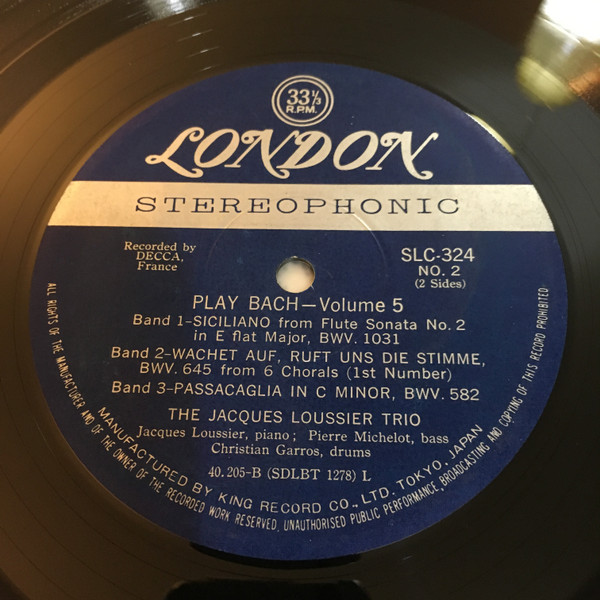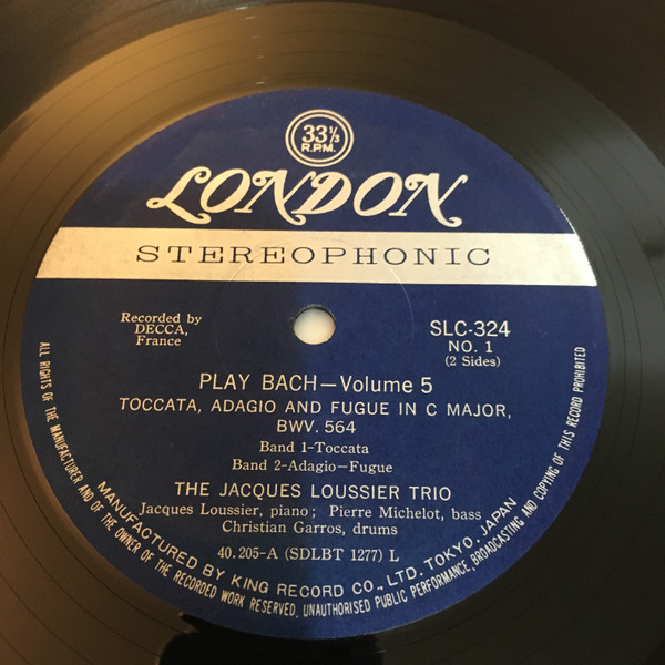 Artist, title on labels: The Jacques Loussier Trio, PLAY BACH – Volume 5