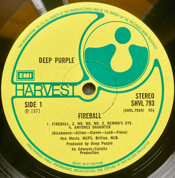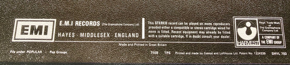 All 1st pressings come in a 'polylined' EMI/Harvest inner sleeve depicting other artists' current releases on the Harvest label.