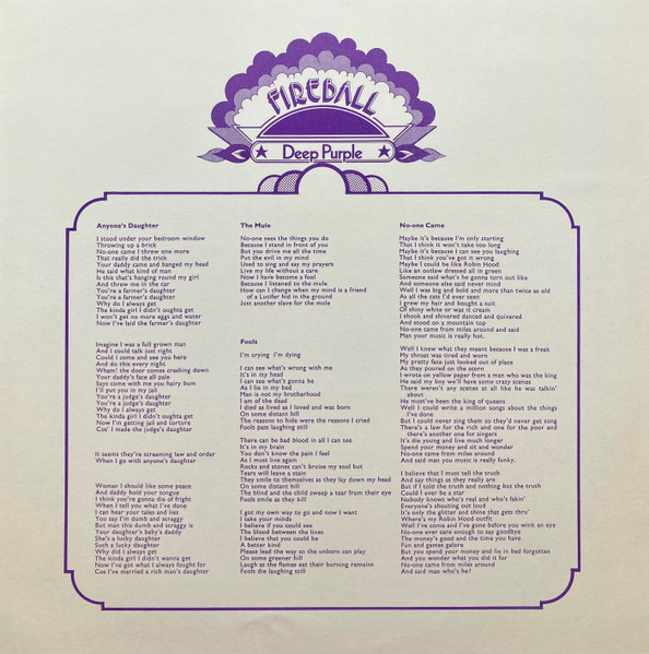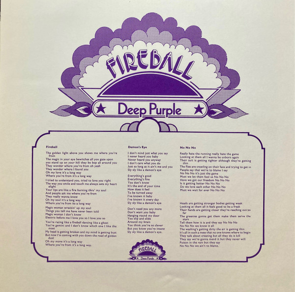 Initial quantities came with a lyrics insert printed in purple on both sides - and this was discontinued in 1973.