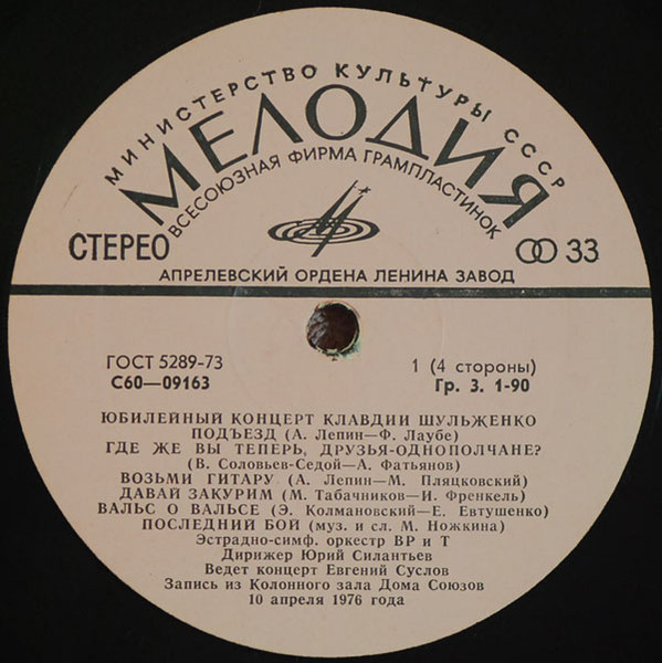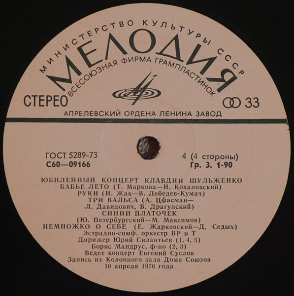 - Orchestra – Эстрадно-Симфонический Оркестр Центрального Телевидения И Всесоюзного Радио* (tracks: A1 to A6, B5, C1, C2, C5, D1, D4, D5)