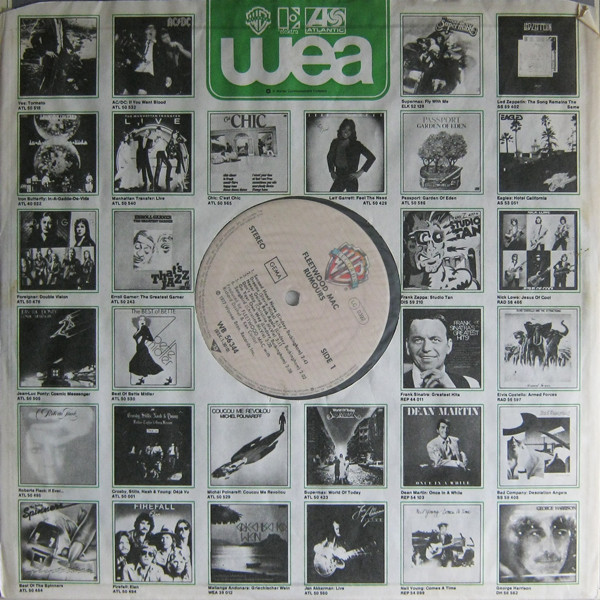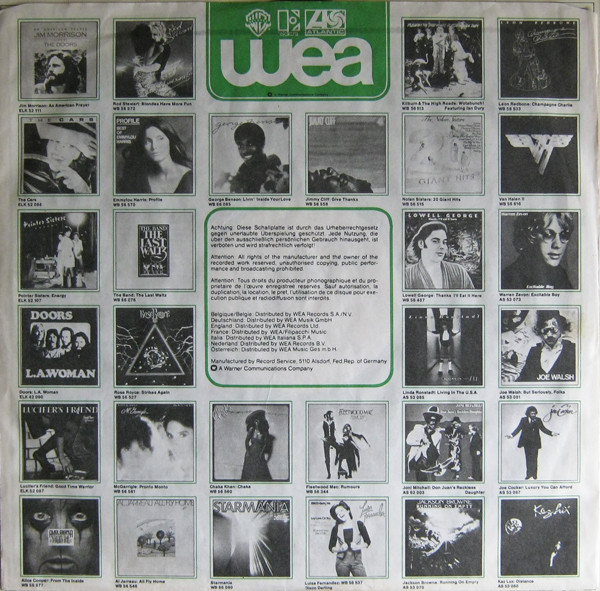 WEA innersleeve, die-cut on one side, promoting other releases of the label.