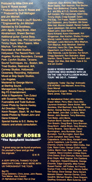 - Producer – Duff McKagan (tracks: B5), Guns N' Roses (tracks: A1 to B4, B6), Jim Mitchell (tracks: B5), Mike Clink (tracks: A2 to B4, B6)
