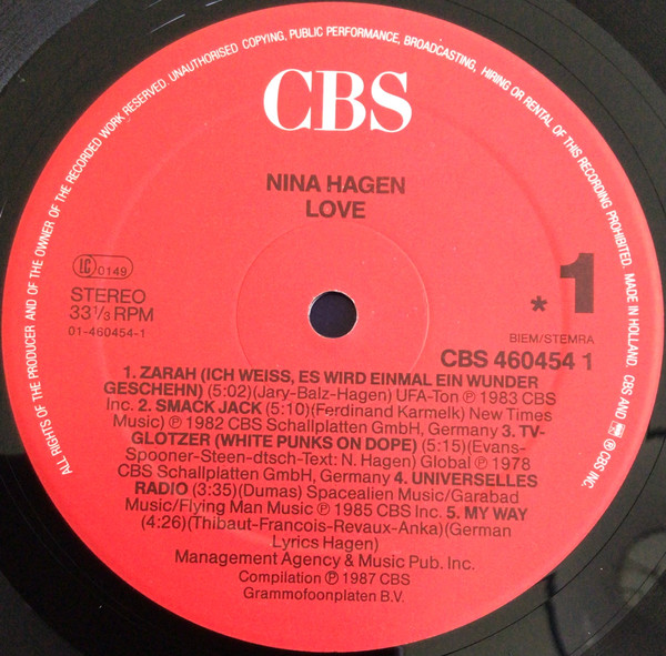 - Phonographic Copyright ℗ – CBS Grammofoonplaten B.V.