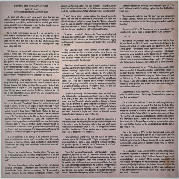 Artist title on inner sleeve: Aerosmith 1971: The Road Starts Hear