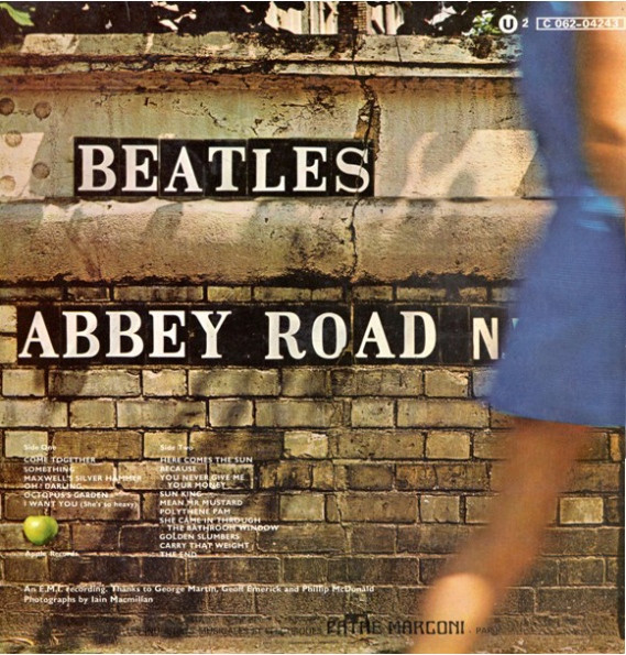 Front cover includes a portion of a square road sewer positioned on the bottom edge of the cover, beneath Ringo and John's feet.