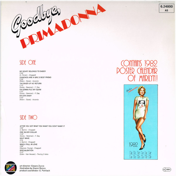Contains 1982 poster calendar of Marilyn, illustrated by Gianni Ronco.