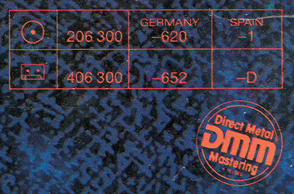 Some copies were issued with a round hype sticker on rear cover: Direct Metal | DMM | Mastering