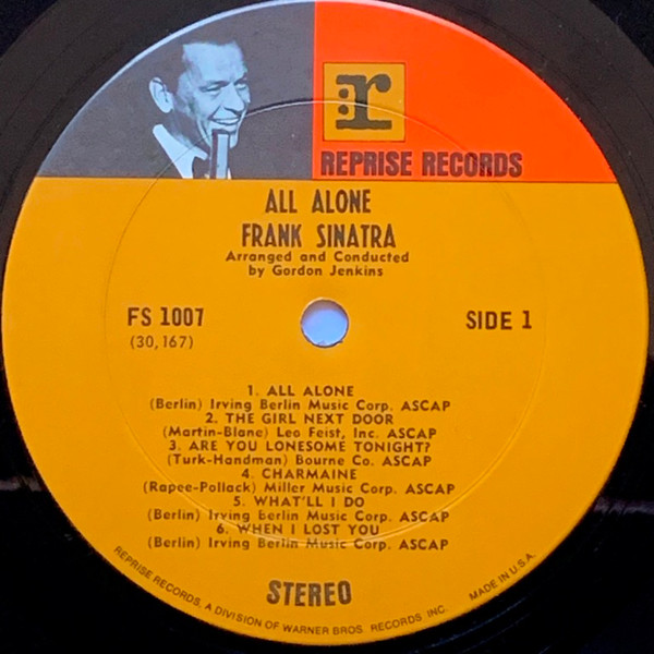 Orange, tan and Frank Sinatra Reprise labels without W7 logo adjacent to the Reprise logo, without W lozenge in the rim text, in use 1970-1972.