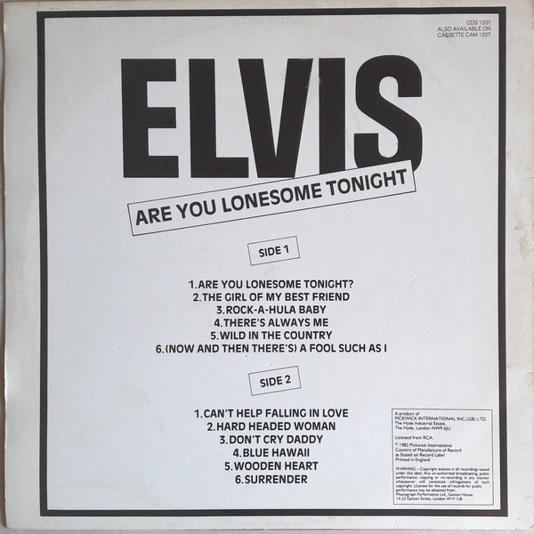 Version with barcode is here Elvis Presley - Are You Lonesome Tonight