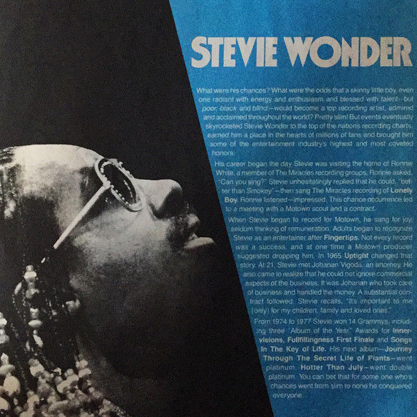 Cover variant of Stevie Wonder - Stevie Wonder's Original Musiquarium I. Same pressing, but without quote on back cover above the logo.