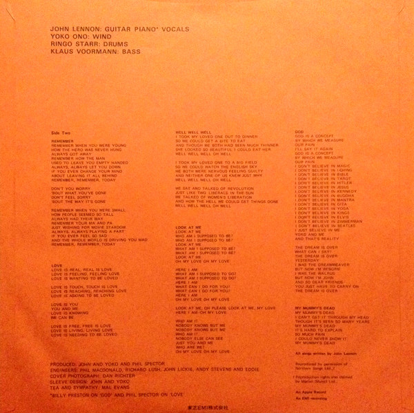 Originally released in UK Dec 1970. Here is the original release John Lennon / The Plastic Ono Band - John Lennon / Plastic Ono Band