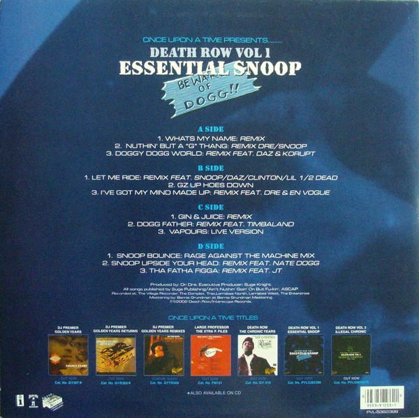 A collection of mostly remixes of tracks featuring Snoop Doggy Dogg, although A2 & B1 originally were released as the main artist being Dr. Dre.