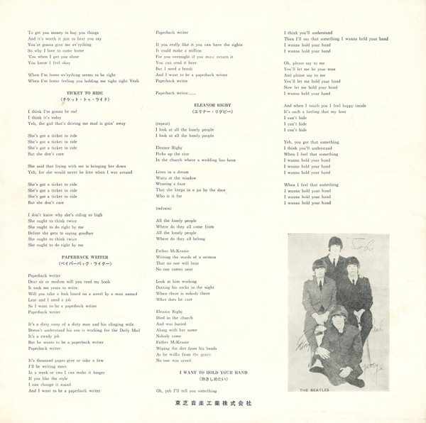 - with a text in Japanese and the lyrics in English, with the titles translated in Japanese.