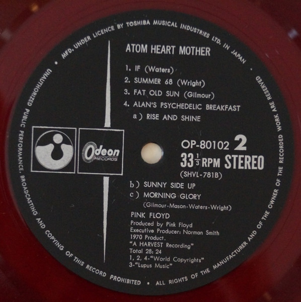The photo with the red generic Japan Tour Commemorative obi is not necessarily unique to this release. When Pink Floyd toured Japan in 1971 and 1972, special red obis were added to their albums. These narrow "tour obis" feature Japanese text on them that says: "Welcome."