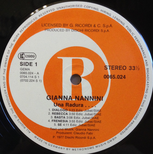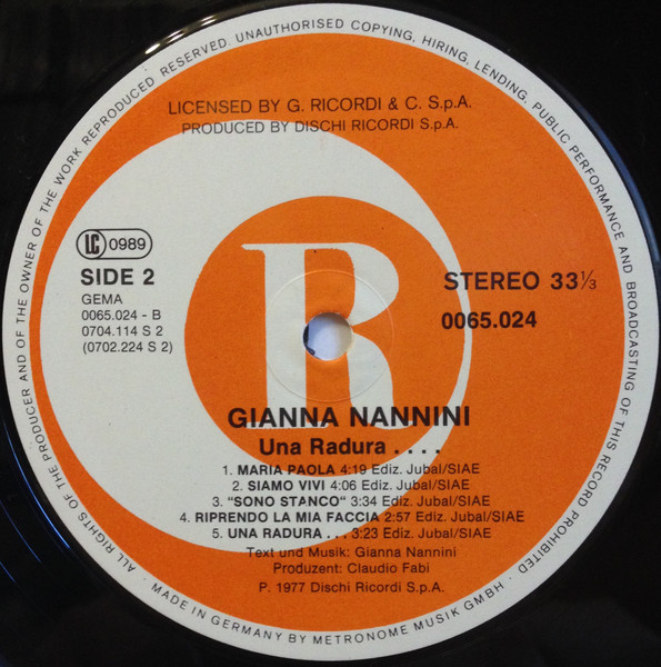 - Phonographic Copyright ℗ – Dischi Ricordi S.p.A.