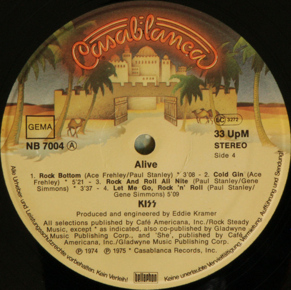 For Casblanca Record and Filmwork issue (same cat# but with different label artwork with filmcrew) see here: Kiss - Alive!
