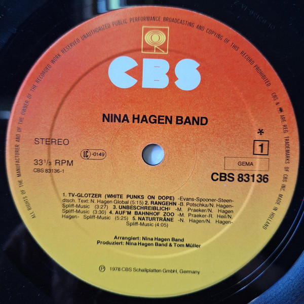 Nina Hagen Band has GEMA boxed above the cat#. Price code 57.